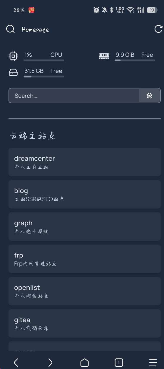还使用了homepage用来管理各个站点,可以实现快速的访问。