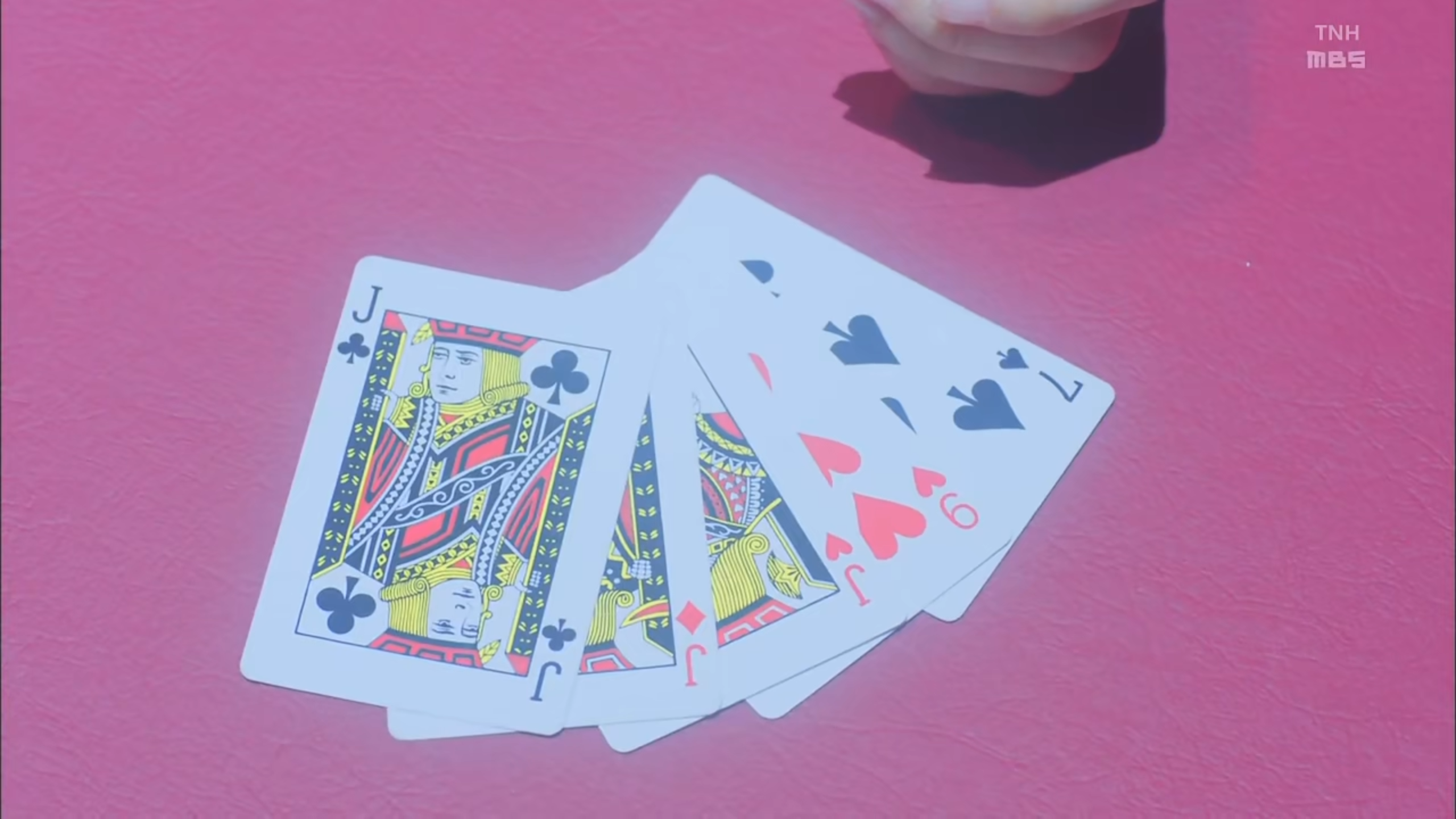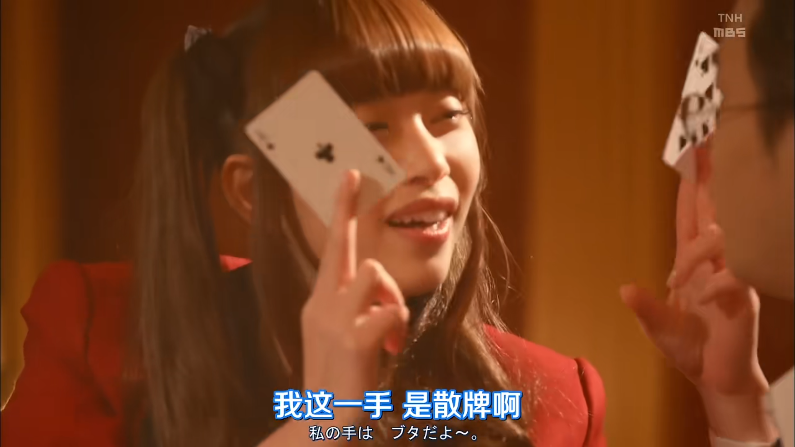 她的赌法堪称最强大脑在世:选择两副牌随机散步背面铺在桌子上,每次翻开两张牌,如果完全一致则自己得分,否则再翻回去,保持背面朝上,即靠记忆来判断哪两张一致,后期记的越多,越容易获胜。赌注是梦子的指甲(话说梦子貌似没做美甲)。