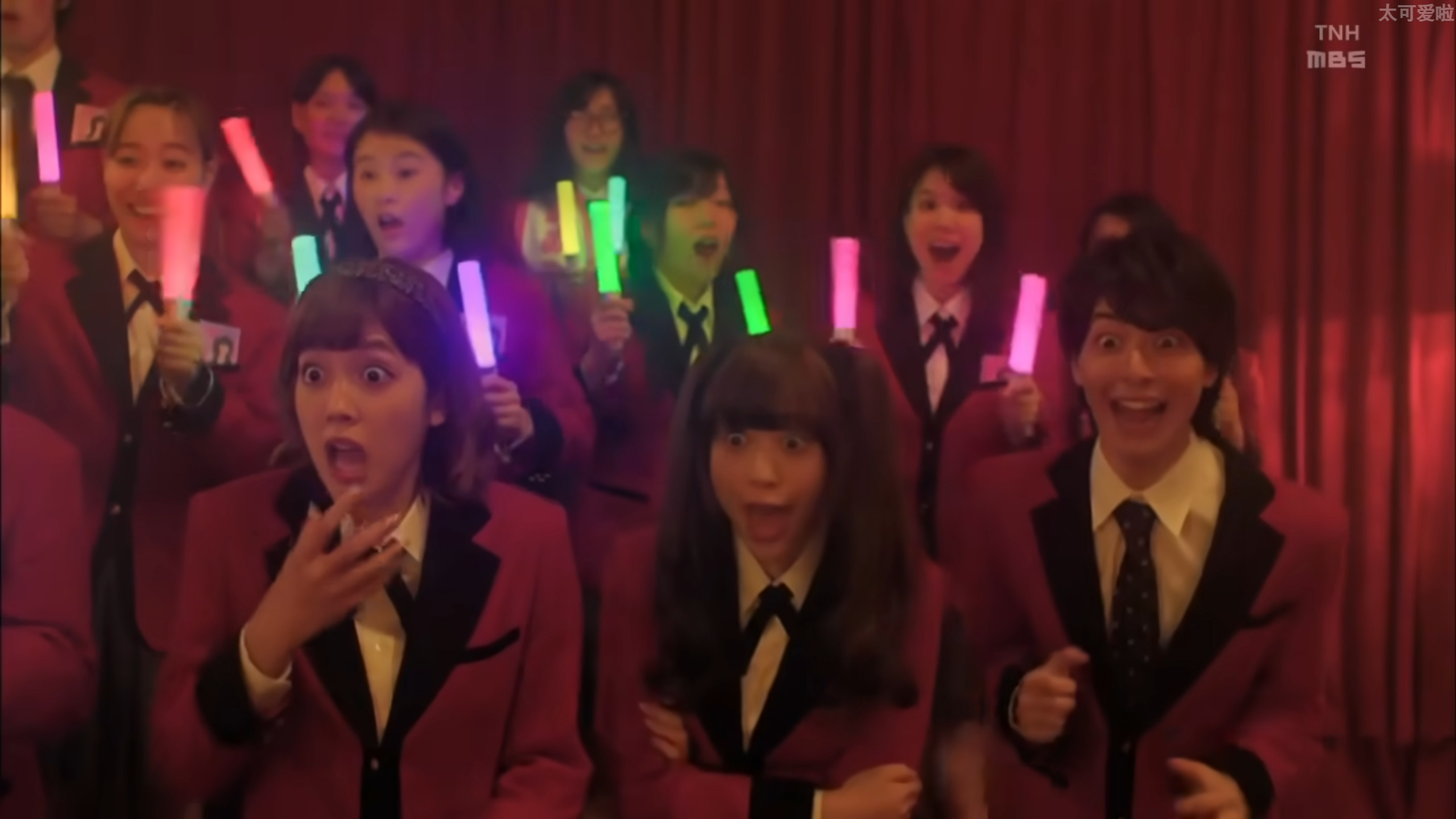 在剧中,真的如图偶像一般夺目,台下的观众打CALL也很整齐,整体的氛围来看,简直就像在剧中看小偶像live表演啊!