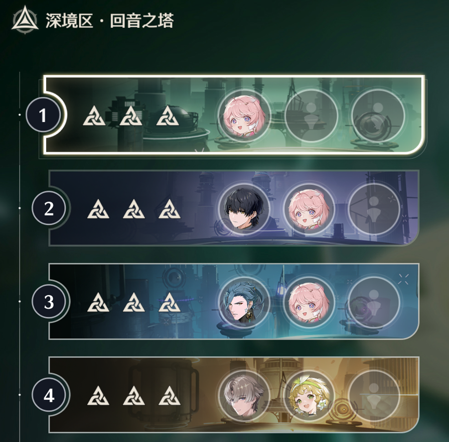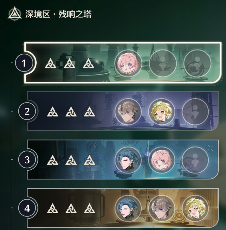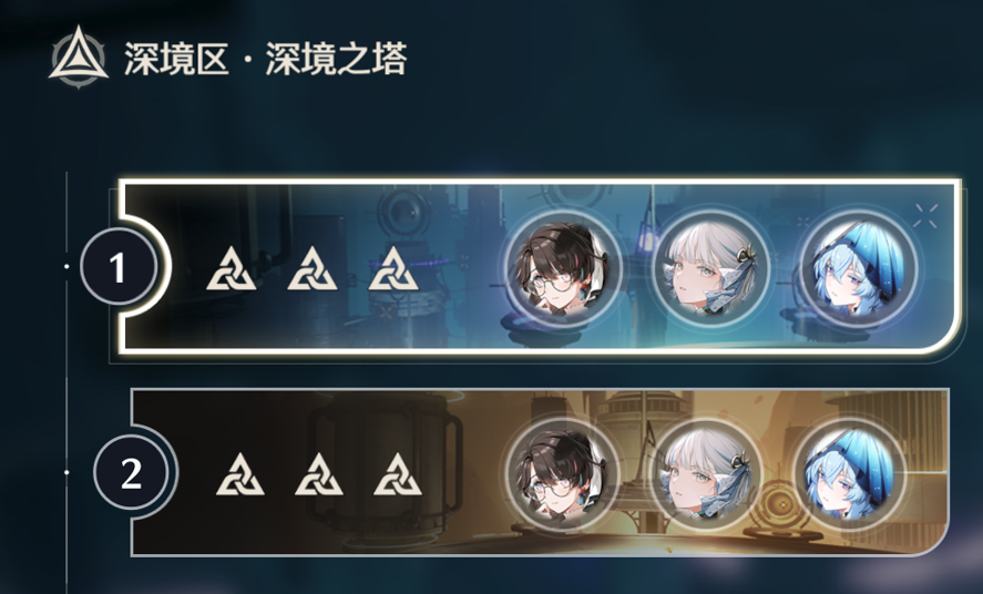 接着打的是右塔,右塔有热熔buff效果,所以把刚练的安可拿出来见见深塔,暗主是凑数的(还没开始拉练度),实在是没有角色可以填坑了,就上暗主了。第三层从左塔匀出来了忌炎,不然输出不够(安可也才刚开始拉,练度支撑不了第三层),第三层牢忌和安可的手法就是主要输出牢忌,安可可以放脱手技能速切释放,第四层比较无脑,不得不说免费送的乡里要数值强度还是在线的。维神延奏直接乡里要reaaaa,ae就完事了,非常轮椅,而且乡里要养成很简单,44111,很容易养成。