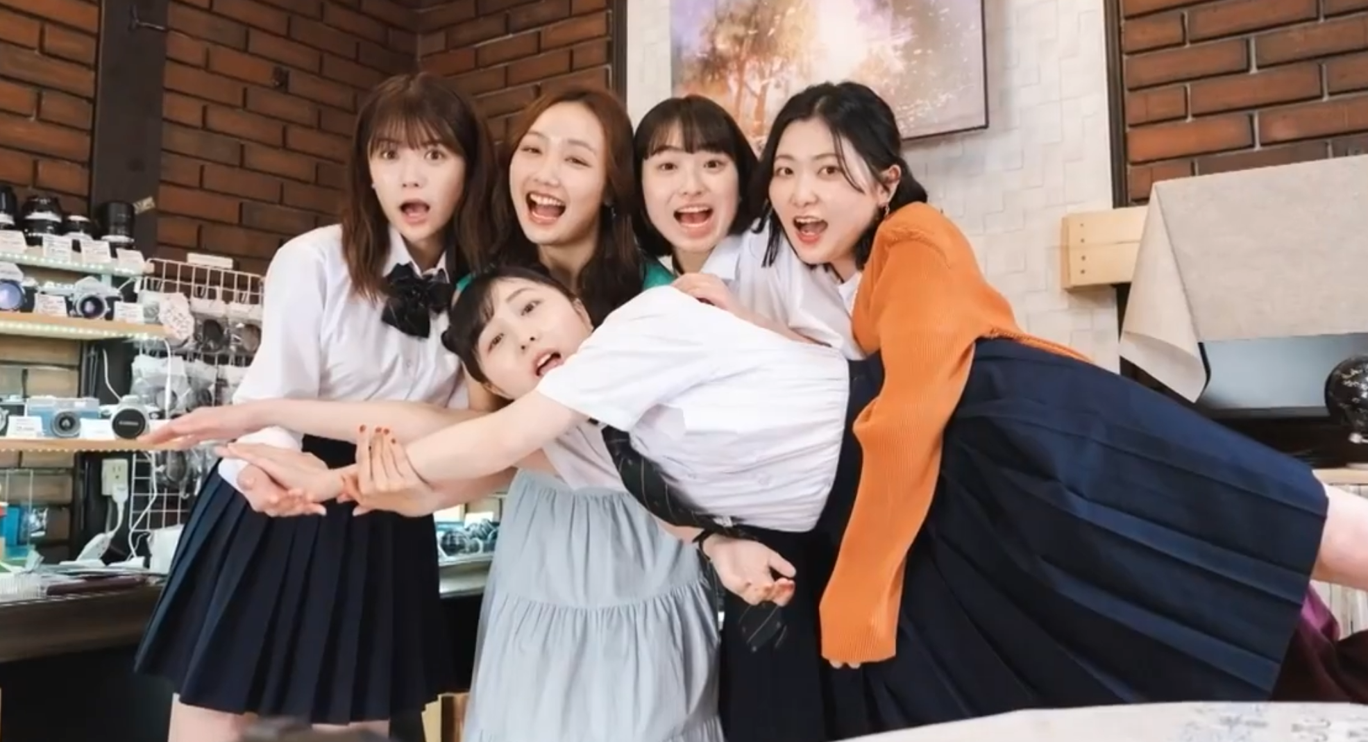 在一次双颠非美都外出,尝试使用长焦变焦镜头取景时,和千里姐相遇,这时候理光妹的颠力报表,与其说是千里姐的迷妹,更像是步入了走火入魔的境界。五人在店里留下了合影。